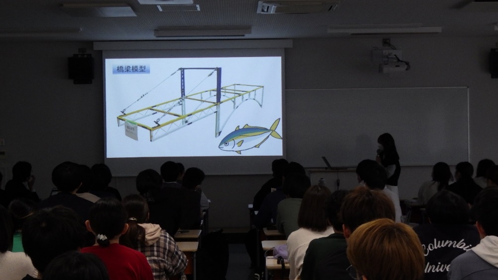4月26日(水)に自主プロジェクトの報告会が行われました。自主プロジェクト、通称自主プロとは都市・交通デザイン学科公認の学生が主体で行う課外活動です。学生の課題解決力や実践力の醸成、地域の魅力向上につながるプロジェクト企画力の醸成、大学のイメージアップに繋がる広報力の醸成を目的に行われています。今回は計6つのプロジェクトが令和四年度に活動した成果について報告しました。数年間活動を続けて軌道に乗ってきたプロジェクトから、昨年立ち上がったばかりで模索を重ねるプロジェクトまで様々あります。それらどの報告からも、日々の勉学だけでは得られない経験を、学生の主体的な活動から積んでいる様子が伺えました。今年度のプロジェクトもいよいよ始動します。今後も自主プロを通した多くの学びを得られることを期待します。