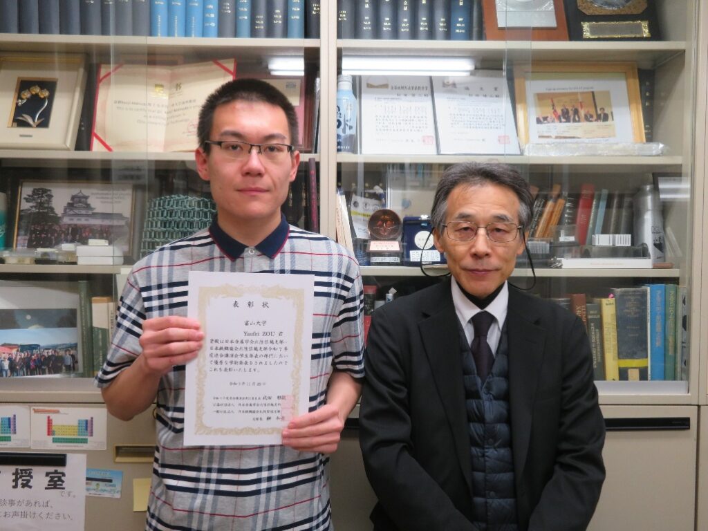 2025年11月29日に長岡技術科学大学で開催された日本金属学会北陸信越支部・日本鉄鋼協会北陸信越支部 令和7年度連合講演会において、材料デザイン工学科材料組織制御工学講座(松田健二教授)の、大学院理工学研究科修士課程2年の鄒 堯飛くんが優秀学生発表賞を受賞しました。