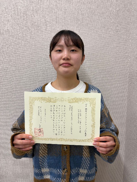 電子情報通信学会HCGシンポジウム2025(R7.12.10-12開催, 会場:北九州国際会議場)における一般セッション「C-5:体験」において、都市・交通デザイン学科4年の鈴木彩留さんが発表した研究課題「農産物の無人販売所における利用者の傾向分析」が、学生優秀インタラクティブ発表賞を受賞しました。今回の発表は、口頭発表とポスターでのインタラクティブ発表の両方を行っています。